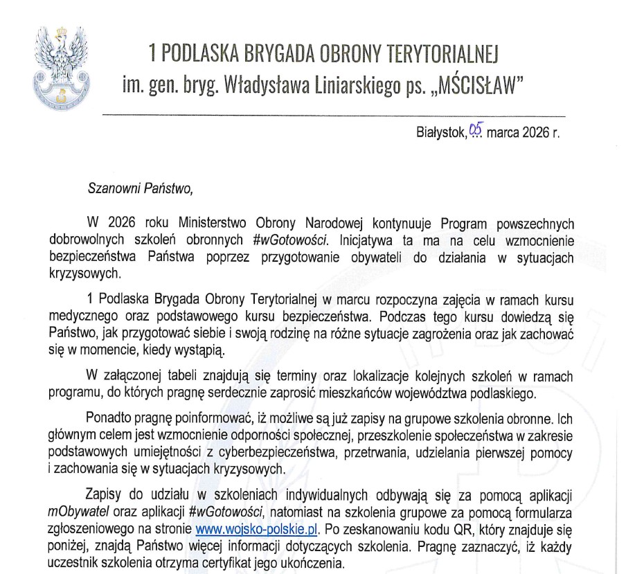 W załączeniu poniżej informacje na temat programu #wGotowości wraz z harmonogramem kursów indywidulnych. Link do formularza zgłoszeniowego: https://formularz-wgotowosci.wp.mil.pl/szkolenia-grupowe/
